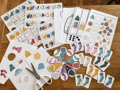 PDF soubor obsahuje 25 stran na A4. Aktivity: Hledání dvojic barevných ponožek (živé pexeso,...