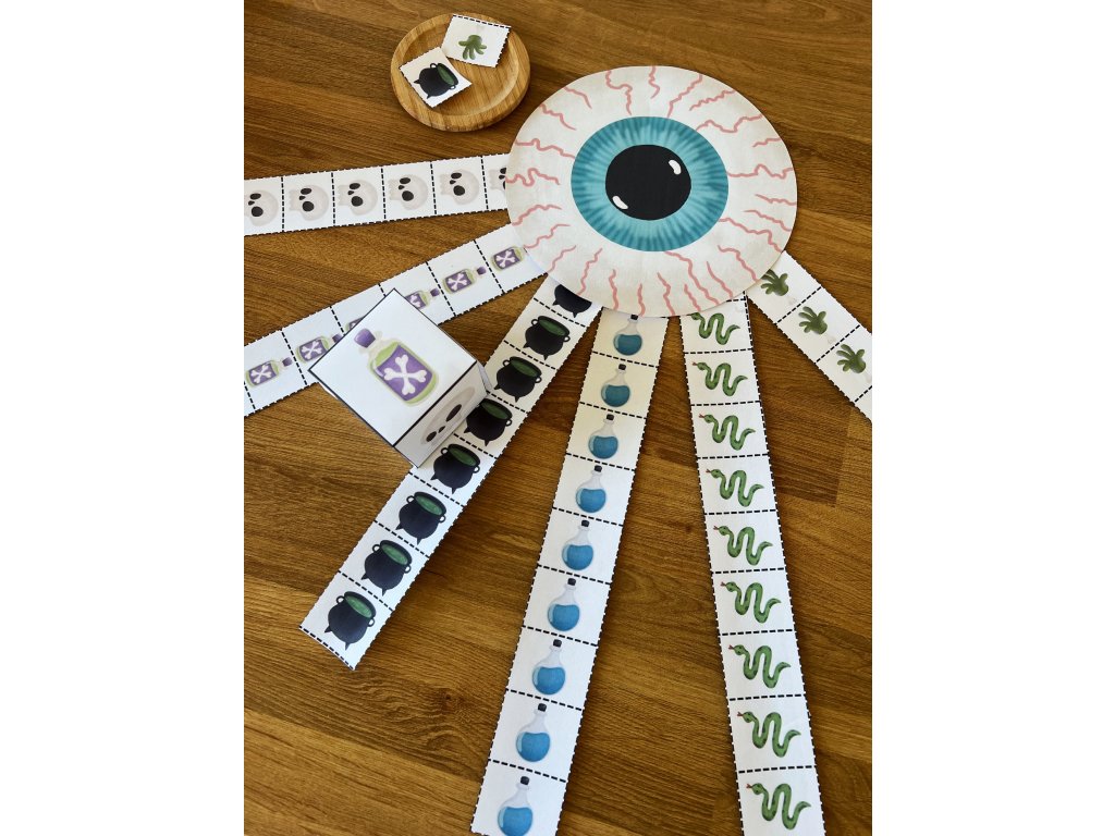Děti hází hrací kostkou a následně si ustřihnou obrázek, který jim padl. Vítězí ten, kdo od určitého obrázku nasbírá nejvíce kusů.