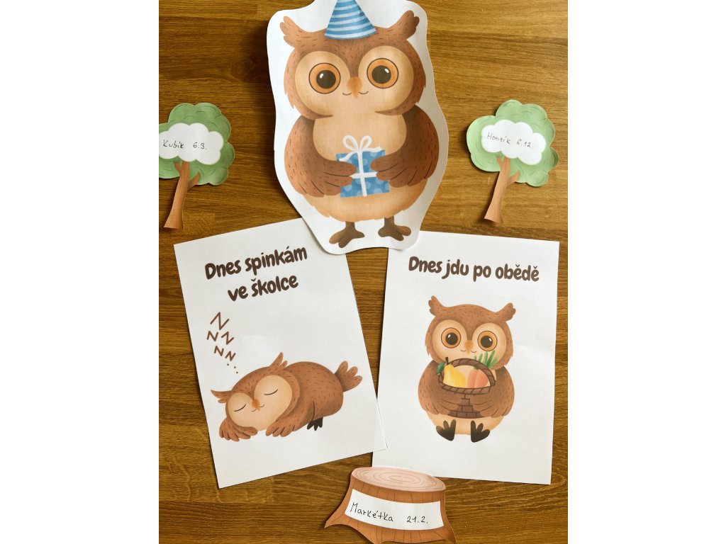 BONUS: Cedulky se sovičkami– „Dnes jdu po obědě“ a „Dnes spinkám ve školce“