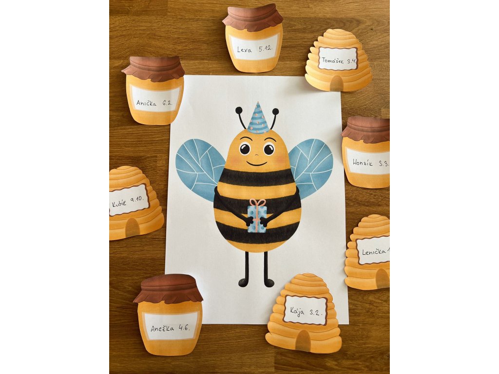 Vneste radost a přehled do narozenin vašich malých školkáčků s tímto hravým narozeninovníkem s motivem roztomilé včelky! Skvělé jako nástěnková dekorace i jako pomocník při plánování oslav. Vhodné pro mateřské školy a dětské skupiny. Stačí vytisknout, doplnit jména a narozeniny a vystavit – narozeniny už nikdy nepřehlédnete!