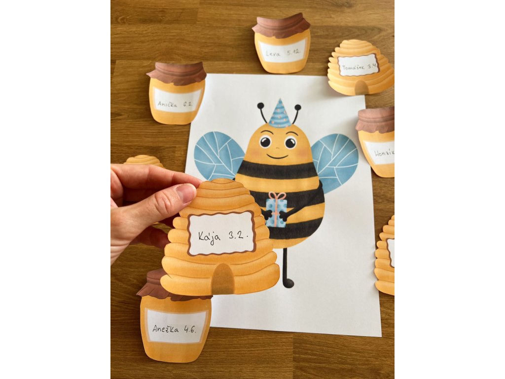 Vneste radost a přehled do narozenin vašich malých školkáčků s tímto hravým narozeninovníkem s motivem roztomilé včelky! Skvělé jako nástěnková dekorace i jako pomocník při plánování oslav. Vhodné pro mateřské školy a dětské skupiny. Stačí vytisknout, doplnit jména a narozeniny a vystavit – narozeniny už nikdy nepřehlédnete!