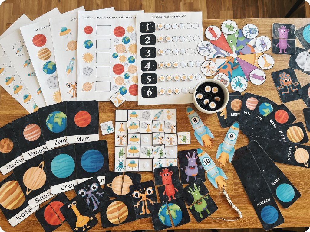 Aktivity doporučuji laminovat folií 125 mic, zajistíte tak maximální životnost a kvalitu hotového výrobku. Některé aktivity, které se skládají z více kusů, můžete ozvláštnit lepícími suchými zipy. Aktivity se vám neztratí, lépe se uchovávají a pro děti je manipulačně zajímavější.