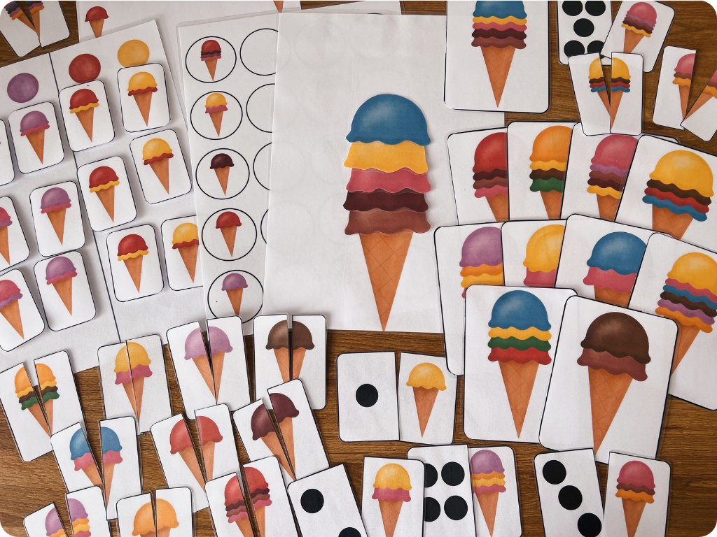 3. Skládání zmrzliny podle předlohové karty (barevné pořadí)